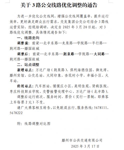 關于3路公交線路優(yōu)化調(diào)整的通告