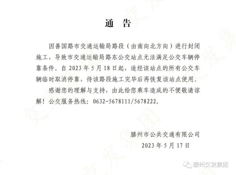 êP(gu¨¡n)ÓÚÅR•rÈ¡ÏûÍ£¿¿Êн»Í¨ß\Ý”¾Ö–|¹«½»Õ¾Å_µÄͨ¸æ